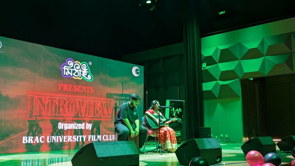 Explaining the inspiration behind such events, Dibyojyuti Paul Srijan (Director of Graphics and Production, BUFC) mentioned, “The main goal is to entertain the students in the midst of our monotonous academic setting, and the huge response from the audience is what makes all our efforts worth it”. Srijan also reflected on how the Bangladesh film industry is on the rise right now, and we must support it to reach international audiences.